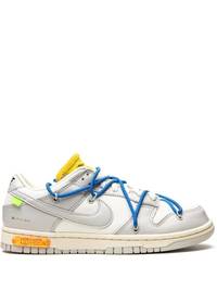 Dunk Low "Lot 10" sneakers Virgil Abloh and Nike have teamed up once again for a new iteration of the Dunk Low. In a grey and white leather construction and equipped with a Swoosh on the sides, the pair comes with overlaid rope lacing system from past Off-White™ x Nike Dunk Low collaborations. Also, to finish the look, there's signature text on the lateral quarter and a black Nike logo print on the heel. Imported Composition Leather 100%