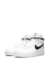 x Supreme Air Force 1 High SP "White" sneakers Supreme and Nike Sportswear dropped another one of their monumental collaborations in 2014, with three colorways of the Air Force 1 High including this version in white leather with black accents. As you can expect, all three sold out instantly and have since become some of the most sought after Air Force 1s in years. World Famous, indeed. Imported Composition Calf Leather 100%