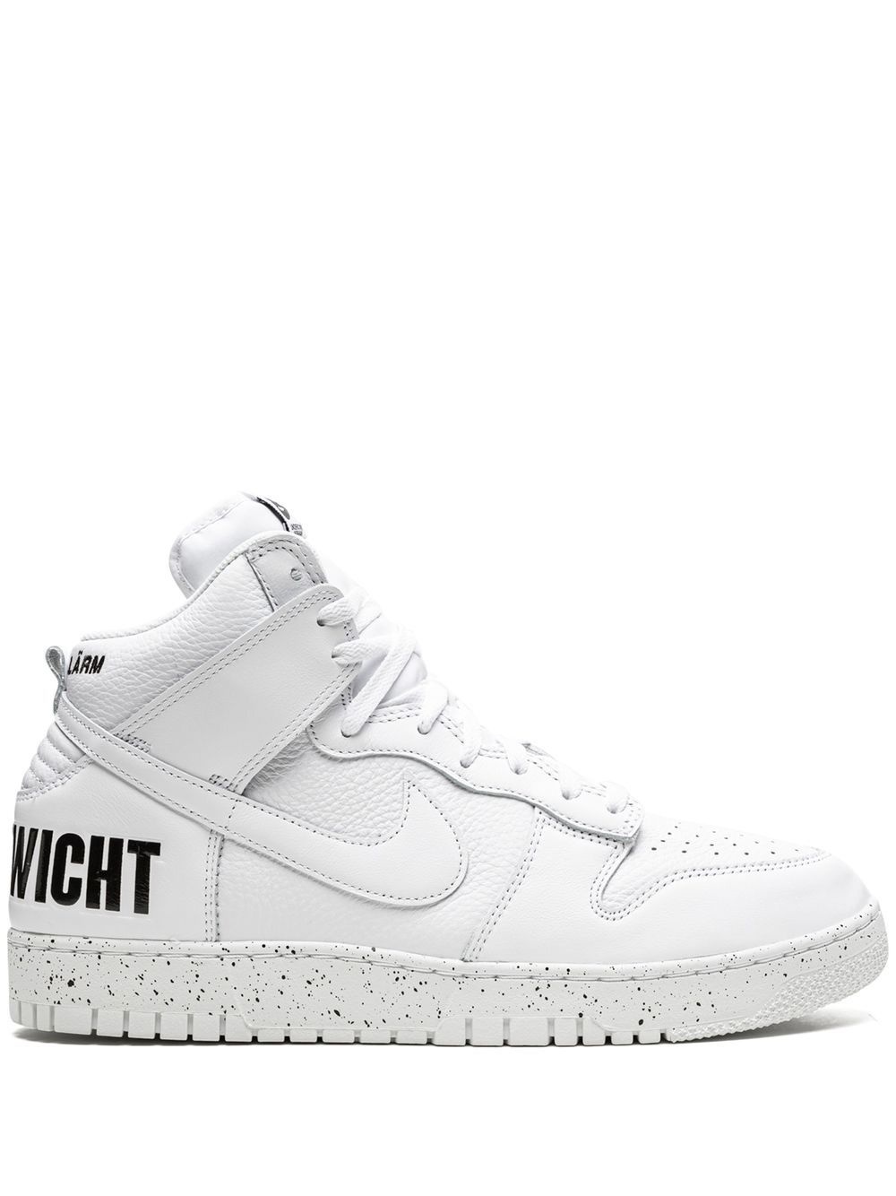 x Undercover Dunk High 1985 sneakers Highlights - White - Leather - Embroidered motif - Slogan print to the rear - Signature swoosh logo detail - Round toe - Front lace-up fastening - Logo patch at the tongue - Ankle-length - Branded insole - Rubber sole - These styles are supplied by a premium sneaker marketplace. stocking only the most sought-after footwear, they source and curate some of the most hard to find sneakers from around the world. Imported Composition Leather 100% SIZE & FIT FittingInformation This piece fits small – take one size up Measurement HEEL 1.1 in(2.8 cm) CIRCUMFERENCE 9.44 in(24 cm) Sole height 0.78 in(2 cm) HEIGHT 4.33 in(11 cm)