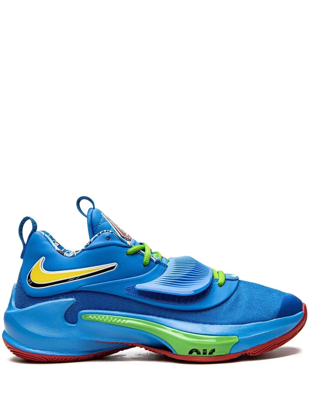 Zoom Freak 3 NRG sneakers With Giannis Antetokounmpo’s signature, the Nike Zoom Freak 3 was built with energy-returning cushioning and multidirectional traction. Besides the vibrant blue hue, the sneaker features a moulded midsole, 2 Zoom Air, and a hook-and-loop strap made from flexible TPU to help reduce internal foot movement. Highlights - Signature swoosh logo detail - Contrasting panel detail - Round toe - Front lace-up fastening - Front touch-strap fastening - Double pull-tab at the opening - Branded insole - Rubber sole - These styles are supplied by a premium sneaker marketplace. stocking only the most sought-after footwear, they source and curate some of the most hard to find sneakers from around the world. Imported Composition Other fibres 100%