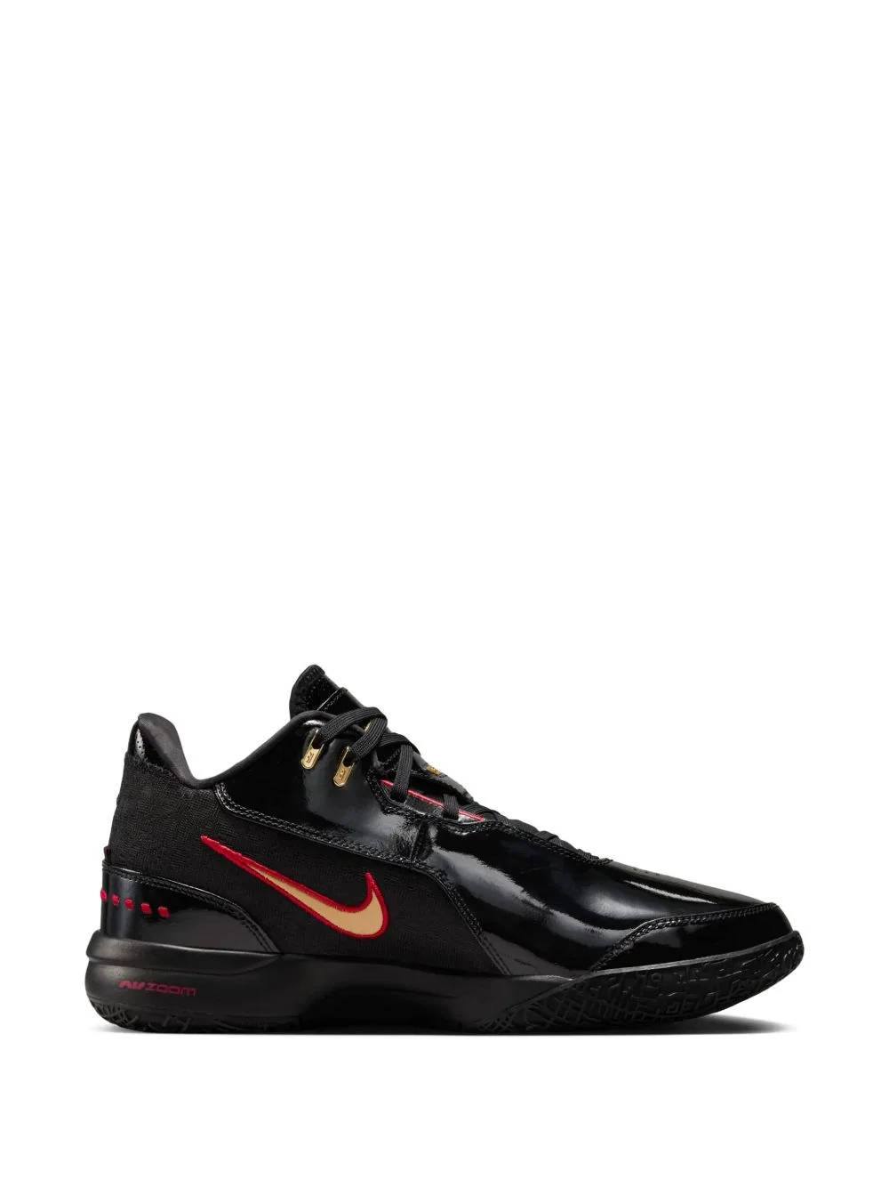 Zoom Lebron NXXT Gen Ampd sneakers Highlights - Black - Leather - Metallic gold swoosh - University red detailing - Low top - Lace-up fastening - Flat sole Imported Composition Outer: Patent Calf Leather 100% Lining: Fabric 100% Sole: Rubber 100%