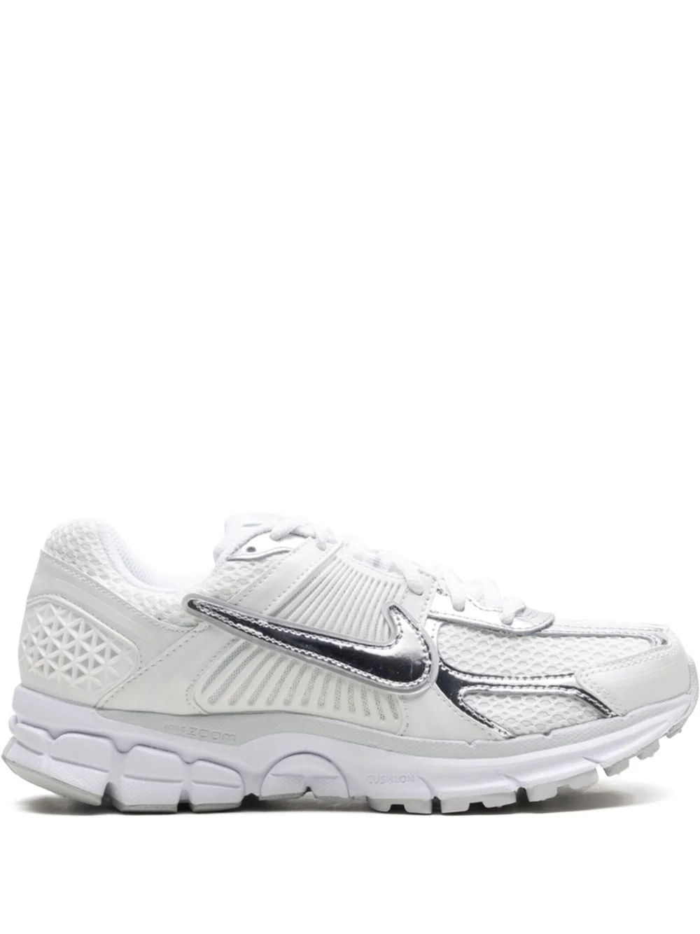 Zoom Vomero 5 "Chrome Toe" sneakers Highlights - White/silver-tone - Front lace-up fastening - Logo patch at the tongue - Signature swoosh logo detail - Round toe - Branded insole - Zoom air cushioning - Rubber outsole - These styles are supplied by a premium and authenticated sneaker marketplace. stocking only the most sought-after footwear, they source and curate some of the most hard to find sneakers from around the world. Imported Composition Outer: Fabric 100%, Calf Leather 100% Sole: Rubber 100% Lining: Fabric 100%