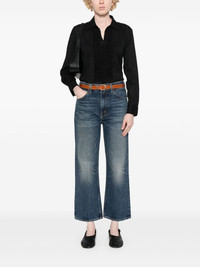 Arwen jeans Highlights - Indigo blue - Cotton - Washed denim - Whiskering effect - Contrast stitching - Logo-engraved silver-tone hardware - Belt loops - Front button and zip fly fastening - Classic five pockets - Mid-rise - Straight leg - Unlined Made in United States Composition Cotton 100% SIZE & FIT Model measurements Height 5 ft 9 in(1.74 m) Bust/Chest 34.64 in(88 cm) Hips 36.61 in(93 cm) Waist 26.37 in(67 cm) FittingInformation Designed with a wide leg cut, these jeans allow for a close fit at the waist and offer a loose and roomy fit over the leg Cropped in length Sturdy and hard-wearing, this denim piece offers no stretch This piece fits true to size – take your usual size