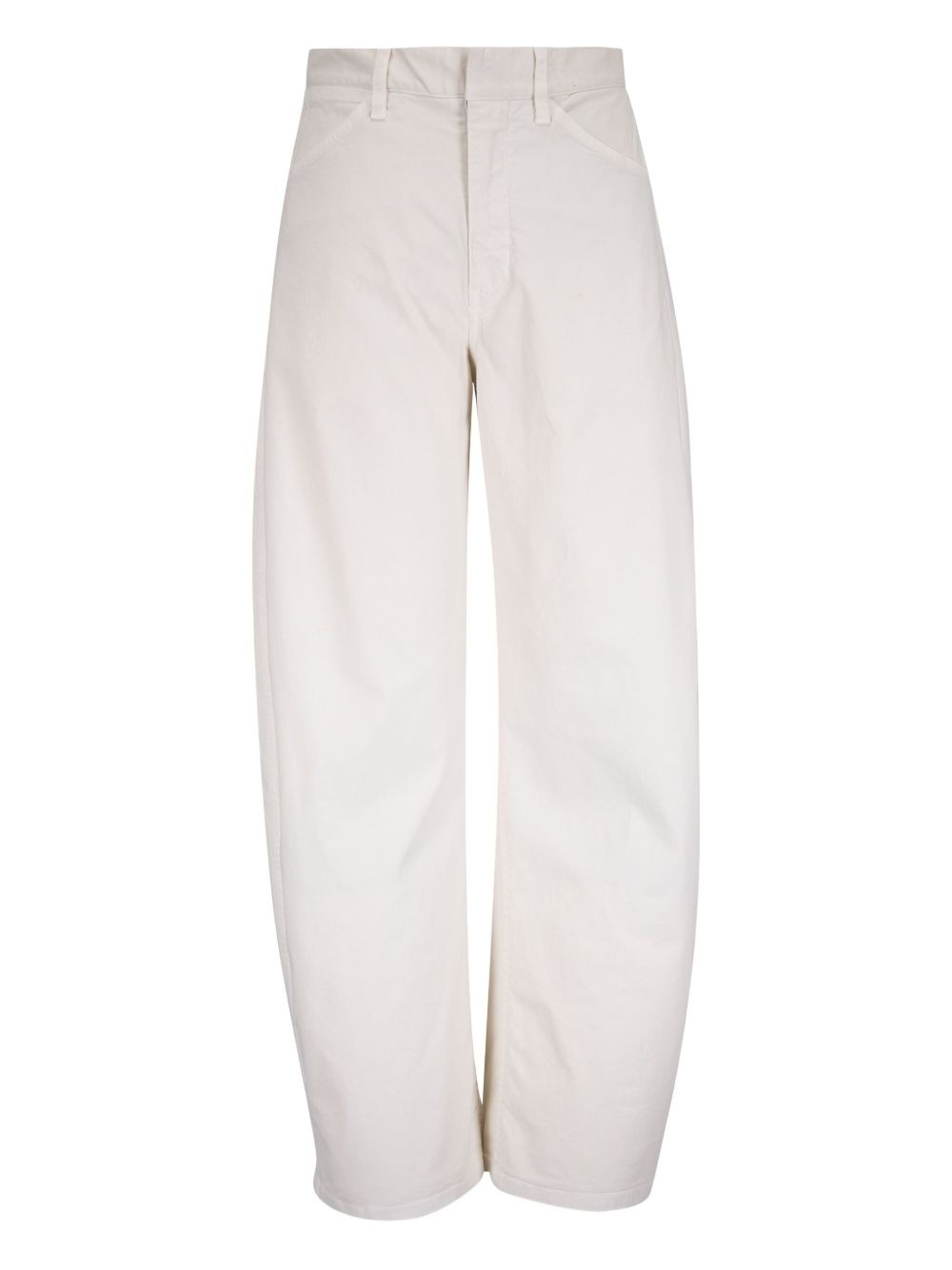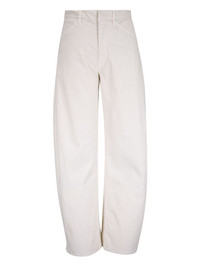 barrel-leg trousers Highlights - Ivory white - Mid-rise waist - Front pockets - Rear patch pockets - Belt loops - Straight leg design Made in United States Composition Cotton 98%, Elastane 2%