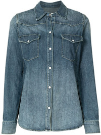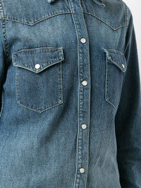 classic-collar denim shirt washed-blue cotton light wash stitched edge classic collar front button fastening long sleeves buttoned cuffs two front flap pockets Made in United States Composition Cotton 100% SIZE & FIT Model measurements Height 5 ft 10 in(1.77 m) Bust/Chest 31.49 in(80 cm) Hips 34.64 in(88 cm) Waist 23.22 in(59 cm) Measurement BUST 35.82 in(91 cm) LENGTH 26.37 in(67 cm) WAIST 35.82 in(91 cm) SLEEVE LENGTH 17.71 in(45 cm) Shoulder Width 14.17 in(36 cm) Washing instructions Machine Wash