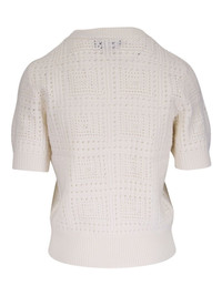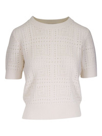 crochet-knit top Highlights - Light beige - Crew neck - Short sleeves - Ribbed-knit edge Made in United States Composition Cashmere 100%