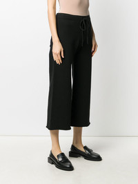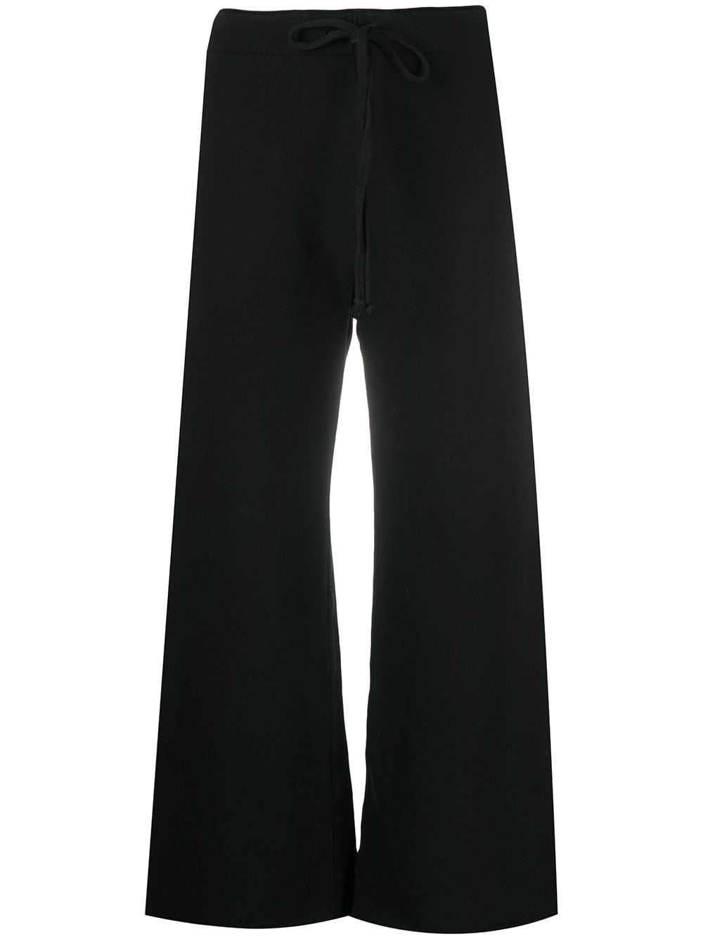 drawstring cropped track pants black cotton rear patch pocket high waist drawstring fastening wide leg cropped Made in United States Composition Cotton 100% SIZE & FIT Model measurements Height 5 ft 10 in(1.78 m) Bust/Chest 31.49 in(80 cm) Hips 36.22 in(92 cm) Waist 25.59 in(65 cm) Measurement INSIDE LEG 24.01 in(61 cm) FRONT RISE 10.62 in(27 cm) WAIST 27.16 in(69 cm) HIPS 36.61 in(93 cm) FittingInformation This piece fits true to size. We recommend you get your regular size Designed to be fitted at the waist and hips, loose over the leg Made with a mid-weight fabric Washing instructions Machine Wash
