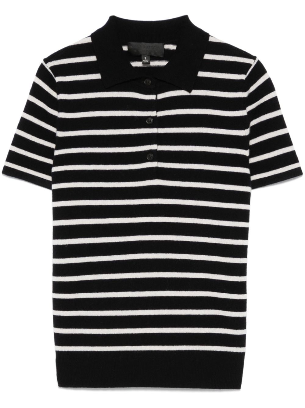 Leanna polo top Highlights - Navy blue/white - Cashmere - Knitted construction - Horizontal stripe pattern - Short front button fastening - Polo collar - Short sleeves - Ribbed hem Imported Composition Cashmere 100% Washing instructions Dry Clean Only