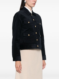 Lizeth jacket Highlights - Midnight blue - Cotton blend - Corduroy - Front press-stud fastening - Classic collar - Long sleeves - Press-stud fastening cuffs - Two chest flap pockets - Two front flap pockets - Adjustable waist strap - Full lining - Straight hem Made In United States Composition Outer: Cotton 93%, Polyester 6%, Elastane 1% Lining: Viscose 100% SIZE & FIT Model measurements Height 5 ft 10 in(1.78 m) Bust/Chest 33.46 in(85 cm) Hips 36.22 in(92 cm) Waist 23.22 in(59 cm) FittingInformation Designed for a boxy fit, intended for a loose fit throughout The adjustable tabs allow for fitted preferences Made from a midweight fabric