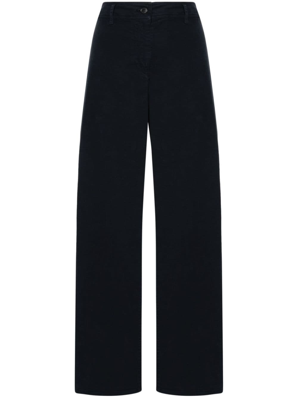 Megan wide-leg trousers Highlights - Midnight blue - Cotton blend - Twill weave - High waist - Belt loops - Concealed fly and button fastening - Two rear patch pockets - Palazzo design - Wide leg Made in United States Composition Cotton 98%, Spandex/Elastane 2% SIZE & FIT Model measurements Height 5 ft 10 in(1.77 m) Bust/Chest 34.64 in(88 cm) Hips 35.43 in(90 cm) Waist 24.8 in(63 cm) FittingInformation Designed with a wide-leg cut, these trousers allow for a close fit at the waist and offer a loose and roomy fit over the leg Made from a midweight stretch fabric, this piece offers elasticity and flexibility when worn This piece fits true to size – take your usual size