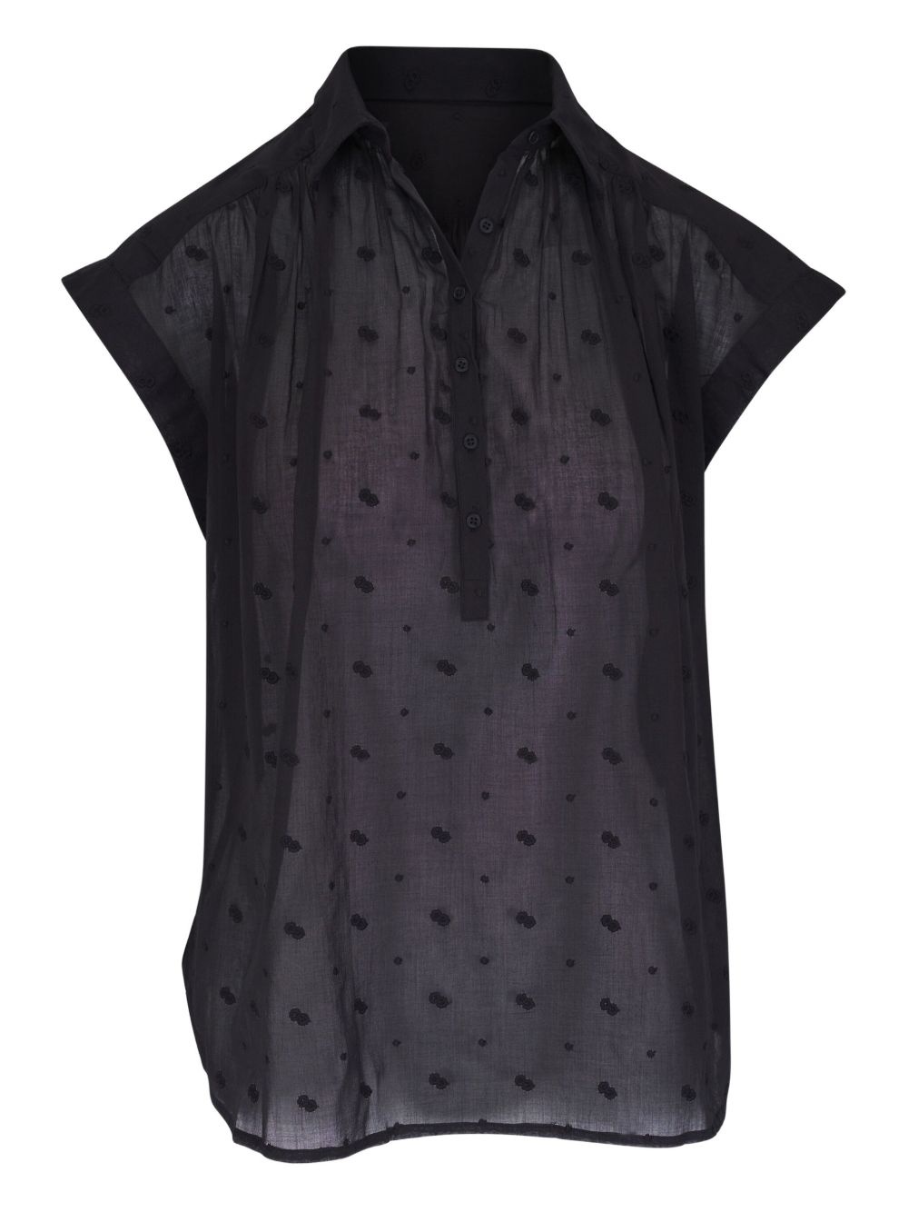 Normandy blouse Highlights - Black - Front button placket - Polka dot embroidery - Classic collar - Cap sleeves Made in United States Composition Fabric 100%