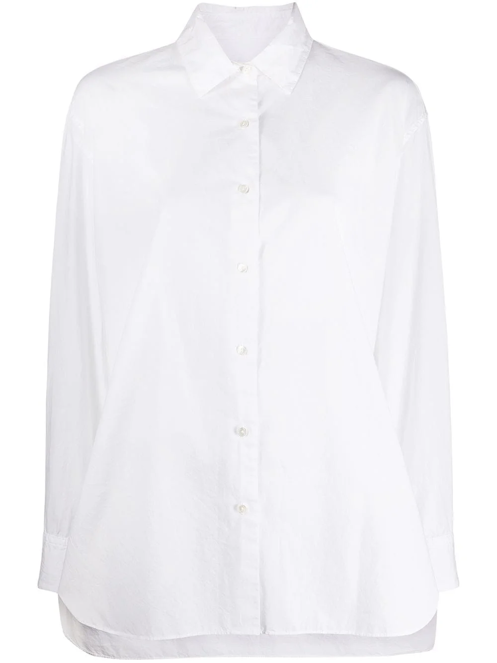 oversized shirt White cotton oversized shirt from Nili Lotan featuring a classic collar, a front button placket, dropped shoulders, long sleeves, button cuffs and a curved hem. Made in Italy Composition Cotton 100% SIZE & FIT Model measurements Height 5 ft 10 in(1.77 m) Bust/Chest 31.49 in(80 cm) Hips 35.43 in(90 cm) Waist 23.22 in(59 cm) Measurement Shoulder Width 17.32 in(44 cm) FittingInformation This piece fits true to size. We recommend you get your regular size Cut for a loose fit Made with a mid-weight non-stretch fabric Washing instructions Dry Clean Only