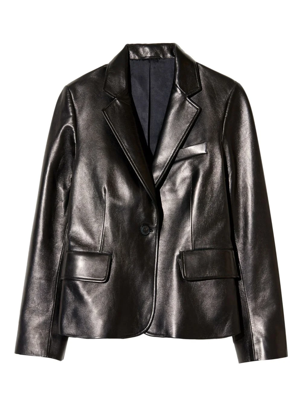 Pascale leather jacket Highlights - Black - Lapel collar - Single breasted - Front button fastening - Front flap pockets - Long sleeves Imported Composition Lamb Skin 100% Washing instructions Specialist Cleaning