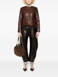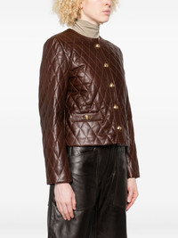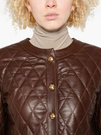 quilted leather jacket Highlights - Bordeaux red - Quilted design - Front button fastening - Welt pockets - Gold-tone buttons - Round neck Imported Composition Lamb Skin 100% SIZE & FIT Model measurements Height 5 ft 9 in(1.75 m) Bust/Chest 34.64 in(88 cm) Hips 36.61 in(93 cm) Waist 26.37 in(67 cm) Washing instructions Specialist Cleaning