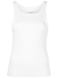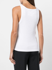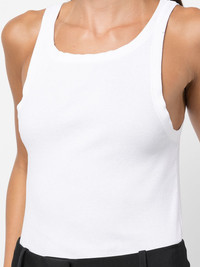 ribbed cotton vest top white cotton ribbed knit round neck sleeveless straight hem Made in United States Composition Cotton 100% SIZE & FIT Model measurements Height 5 ft 10 in(1.77 m) Bust/Chest 29.92 in(76 cm) Hips 35.03 in(89 cm) Waist 24.01 in(61 cm) FittingInformation This piece fits true to size. We recommend you get your regular size Cut for a close fit Made with a mid-weight fabric Washing instructions Dry Clean Only