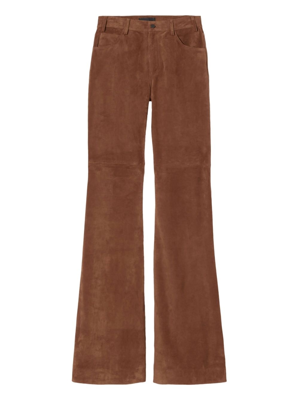 Roe flared suede trousers Highlights - Brown - Flared leg - Front pockets - Concealed fly and button fastening - Belt loops - Rear patch pockets - Seam detailing Imported Composition Calf Suede 100%