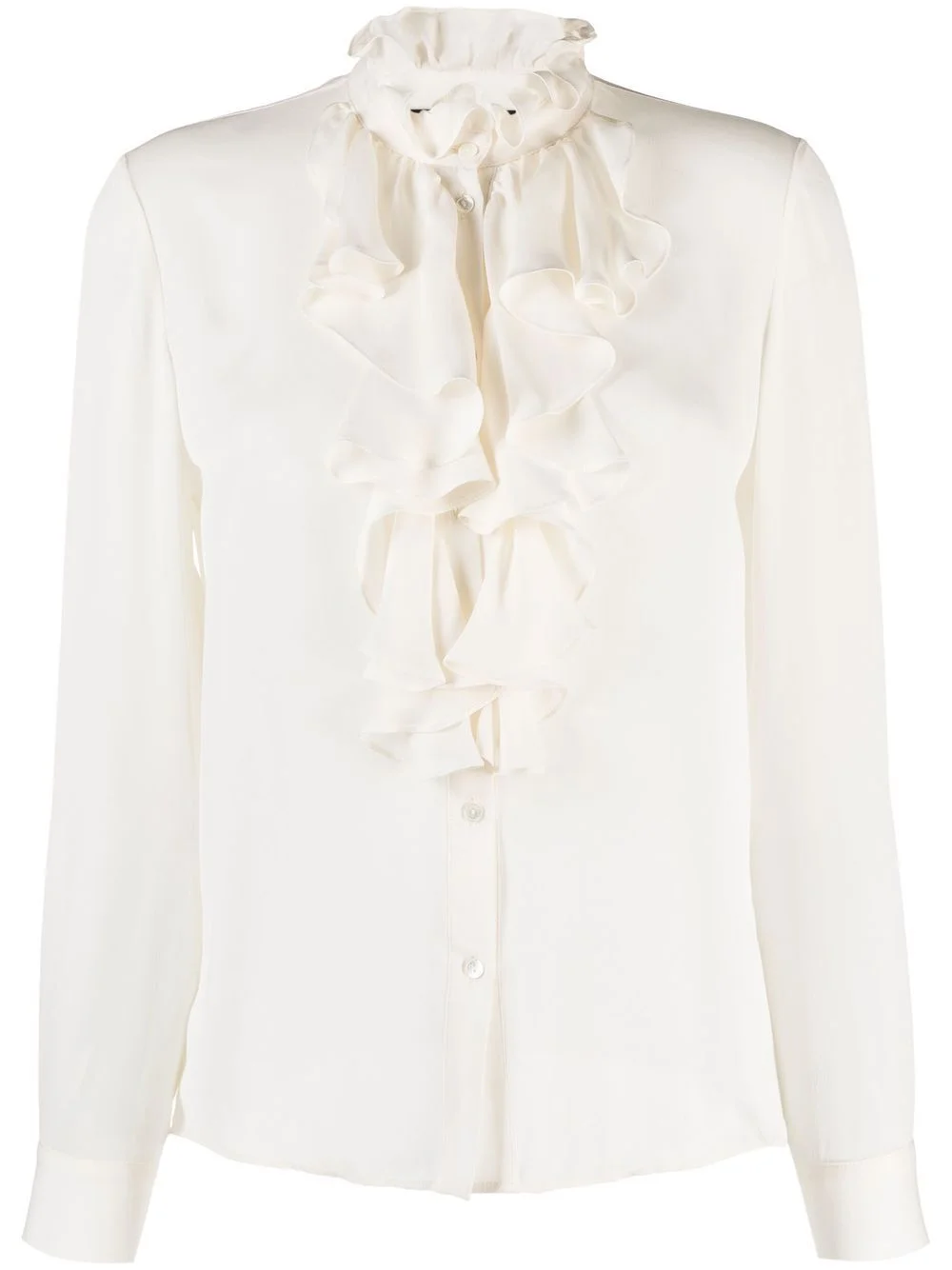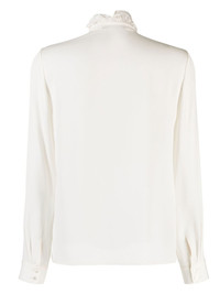 ruffle-trim detail shirt ivory white silk ruffle trim front button fastening long sleeves straight hem Made in United States Composition Silk 100% Washing instructions Dry Clean Only