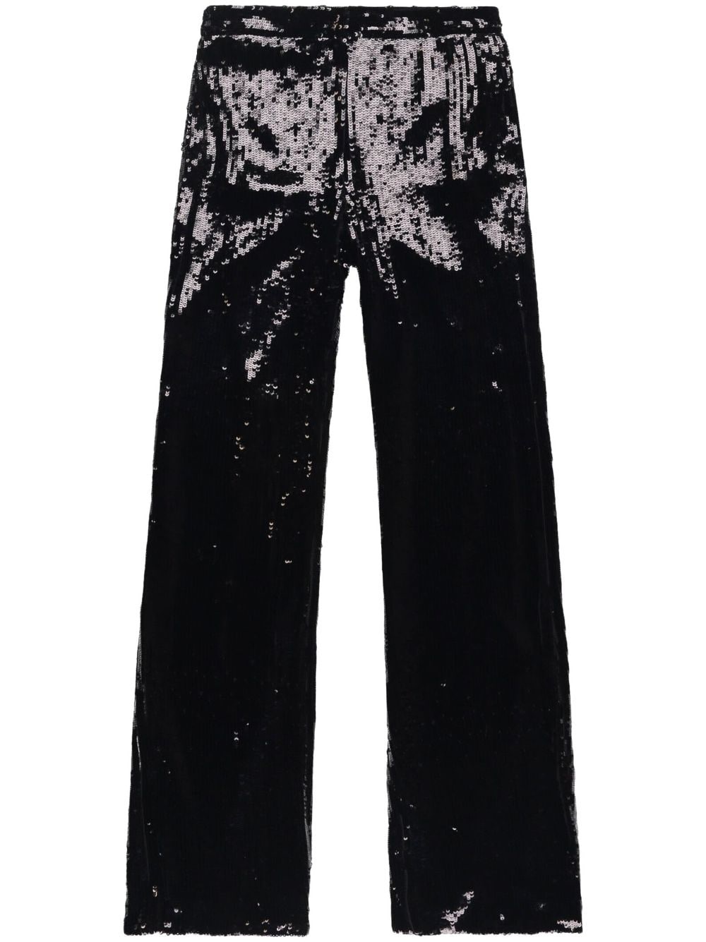 sequin-embellished flared trousers Highlights - Black - Sequin embellishment - Flared design - Elasticated waistband - Floor-length Imported Composition Acetate 65%, Polyester 35%
