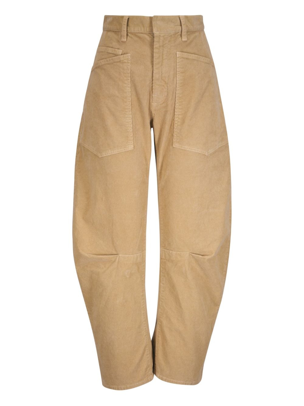 Shon corduroy trousers Highlights - Beige - Corduroy texture - Patch pockets - Button fly - Straight leg - Mid waist Made in United States Composition Cotton 93%, Polyester 6%, Polyurethane 1% Washing instructions Machine Wash