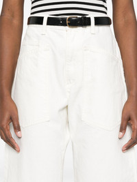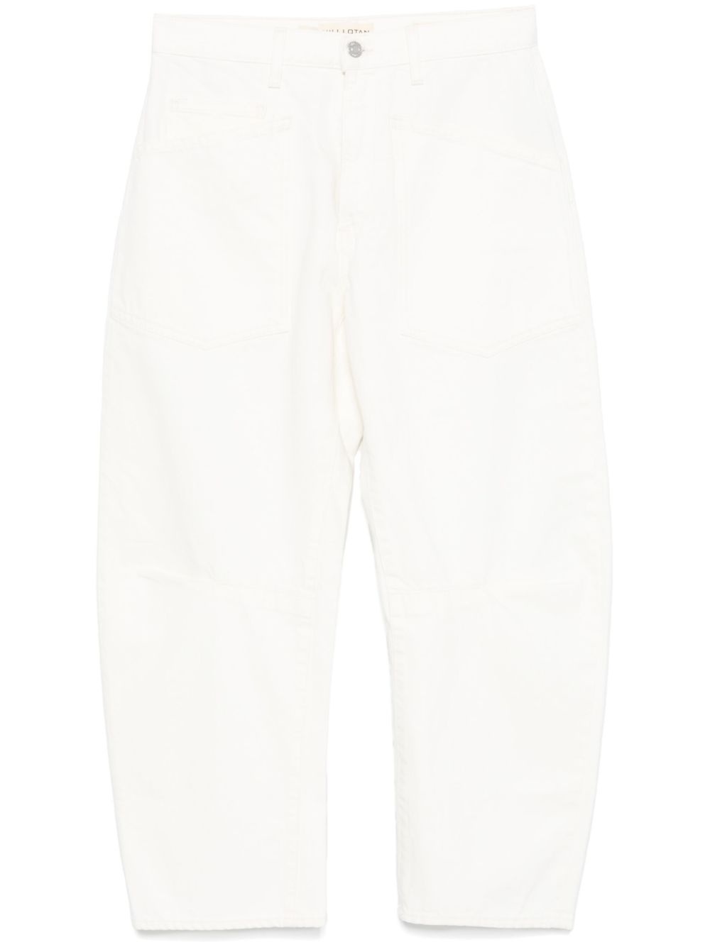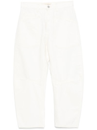 Shon jeans Highlights - White - Front button and zip fastening - Belt loops - Classic five pockets - Tapered leg Made in United States Composition Cotton 100% SIZE & FIT Model measurements Height 5 ft 10 in(1.77 m) Bust/Chest 29.92 in(76 cm) Hips 34.25 in(87 cm) Waist 23.62 in(60 cm) FittingInformation Designed with a wide leg cut, these jeans allow for a close fit at the waist and offer a loose and roomy fit over the leg Sturdy and hard-wearing, this denim piece offers no stretch