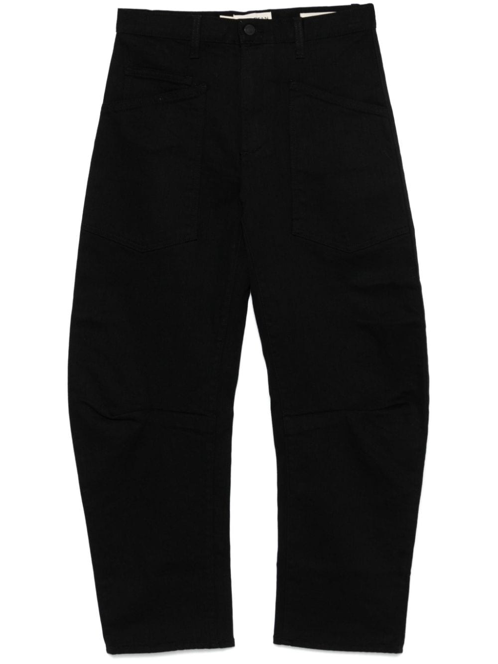 Shon jeans Highlights - Black - Cotton blend - Denim - Front button and zip fastening - Mid-rise - Belt loops - Classic five pockets - Tapered leg Made in United States Composition Cotton 98%, Polyurethane 2% SIZE & FIT Model measurements Height 5 ft 9 in(1.75 m) Bust/Chest 31.88 in(81 cm) Hips 34.64 in(88 cm) Waist 24.01 in(61 cm) FittingInformation Designed for a tapered fit, these jeans allow a close fit at the waist and a loose unrestricted fit over the leg with a closer fit towards the ankle Cropped in length Constructed from stretch denim, this piece offers a stretch fit with durability