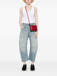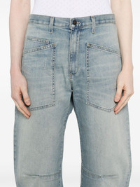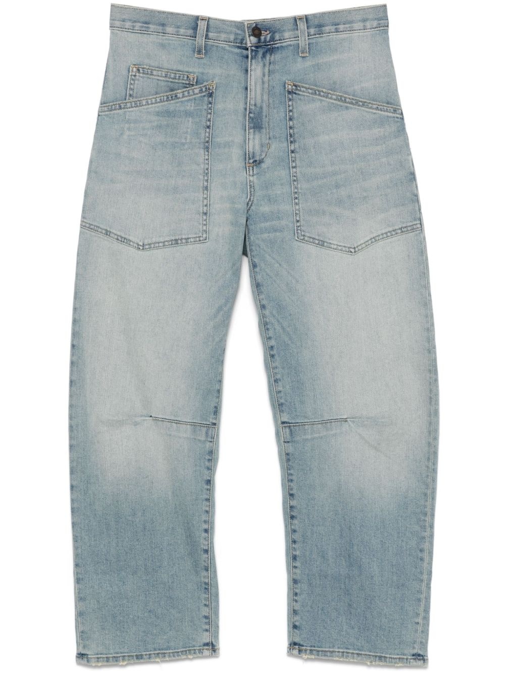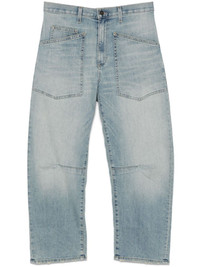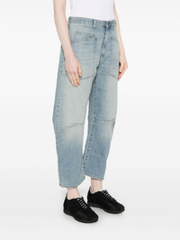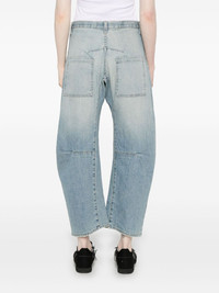 Shon jeans Highlights - Light blue - Concealed fly and button fastening - Classic five pockets - Belted waist tabs - Dart detailing Made in United States Composition Cotton 98%, Polyurethane 2% SIZE & FIT Model measurements Height 5 ft 9 in(1.75 m) Bust/Chest 34.64 in(88 cm) Hips 36.61 in(93 cm) Waist 26.37 in(67 cm) Measurement FRONT RISE 13.77 in(35 cm) WAIST 30.7 in(78 cm) HIPS 37.79 in(96 cm) FittingInformation Designed for a tapered fit, these jeans allow a close fit at the waist and a loose unrestricted fit over the leg with a closer fit towards the ankle Constructed from stretch denim, this piece offers a stretch fit with durability Washing instructions Machine Wash
