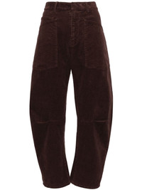 Shon pant Highlights - Oxblood red - Cotton blend - Twill weave - Mid-rise - Two front patch pockets - Two rear patch pockets - Small patch pocket - Belt loops - Concealed front button, hook and zip fastening - Cropped - Straight hem Made in United States Composition Cotton 93%, Polyester 6%, Elastane 1% SIZE & FIT Model measurements Height 5 ft 9 in(1.76 m) Bust/Chest 31.1 in(79 cm) Hips 35.03 in(89 cm) Waist 24.4 in(62 cm) FittingInformation Designed for a relaxed tapered cut, these trousers allow for a close fit at the waist and offer a loose fit at the thighs, with a closer fit toward the ankles Made from a midweight stretch fabric, this piece offers elasticity and flexibility when worn