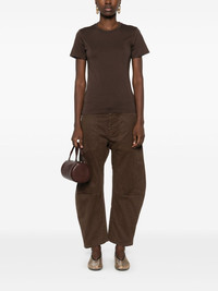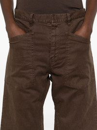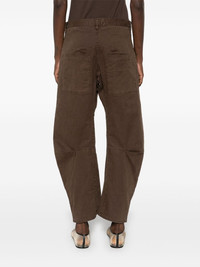 Shon trousers Highlights - Chocolate brown - Cotton blend - Twill weave - Concealed front fastening - Belt loops - Mid-rise - Three front patch pockets - Dart detailing - Two rear patch pockets - Tapered leg Made in United States Composition Cotton 98%, Elastane 2% SIZE & FIT Model measurements Height 5 ft 11 in(1.8 m) Bust/Chest 32.67 in(83 cm) Hips 36.22 in(92 cm) Waist 24.4 in(62 cm) FittingInformation Designed for a tapered fit, these trousers allow for a close fit at the waist and a loose unrestricted fit over the leg with a closer fit towards the ankle Made from a midweight stretch fabric, this piece offers elasticity and flexibility when worn Washing instructions Machine Wash