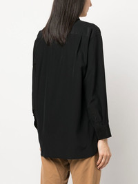 silk long-sleeved shirt black silk pointed flat collar front button fastening long sleeves buttoned cuffs curved hem Made in United States Composition Silk 100% SIZE & FIT Model measurements Height 5 ft 11 in(1.8 m) Bust/Chest 33.07 in(84 cm) Hips 37.4 in(95 cm) Waist 25.19 in(64 cm) Measurement CHEST 47.24 in(120 cm) LENGTH 28.34 in(72 cm) HIPS 47.24 in(120 cm) FittingInformation This piece fits true to size. We recommend you get your regular size Cut for a loose fit Made with a mid-weight non-stretch fabric Washing instructions Dry Clean Only