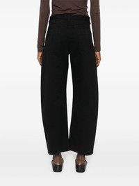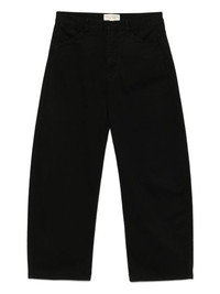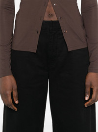 Tribeca trousers Highlights - Black - Concealed front button, hook and zip fastening - Belt loops - Two rounded pockets to the sides - Two rear patch pockets Made in United States Composition Cotton 98%, Elastane 2% SIZE & FIT Model measurements Height 5 ft 11 in(1.8 m) Bust/Chest 32.67 in(83 cm) Hips 36.22 in(92 cm) Waist 24.4 in(62 cm) FittingInformation Designed with a wide-leg cut, these trousers allow for a close fit at the waist and offer a loose and roomy fit over the leg Made from a midweight stretch fabric, this piece offers elasticity and flexibility when worn