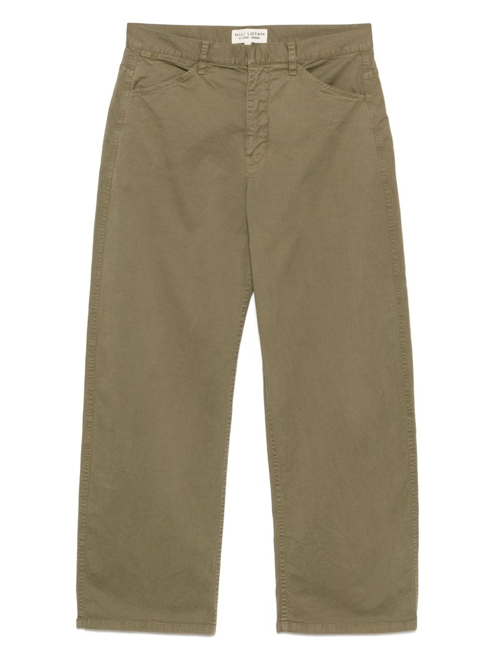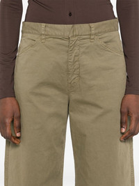 Tribeca trousers Highlights - Khaki - Concealed front button, hook and zip fastening - Belt loops - Two rounded pockets to the sides - Two rear patch pockets Made in United States Composition Cotton 98%, Elastane 2% SIZE & FIT Model measurements Height 5 ft 11 in(1.8 m) Bust/Chest 32.67 in(83 cm) Hips 36.22 in(92 cm) Waist 24.4 in(62 cm) FittingInformation Designed with a wide-leg cut, these trousers allow for a close fit at the waist and offer a loose and roomy fit over the leg Made from a midweight stretch fabric, this piece offers elasticity and flexibility when worn