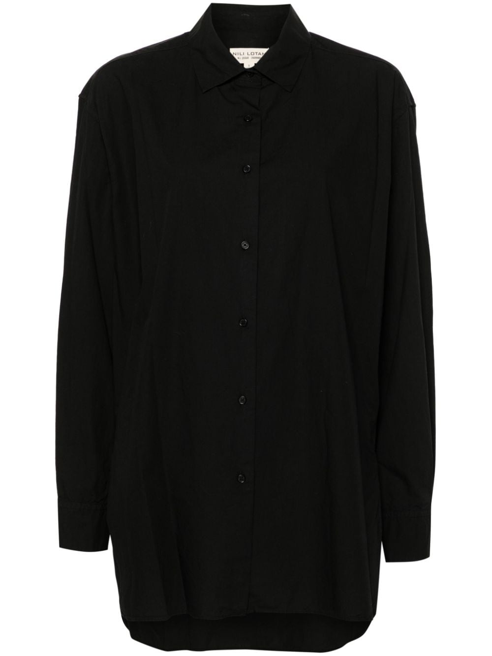 Yorke shirt Highlights - Black - Cotton - Poplin texture - Classic collar - Front button fastening - Long sleeves - Buttoned cuffs - Side slits - High-low hem Made in Italy Composition Cotton 100% SIZE & FIT Model measurements Height 5 ft 9 in(1.76 m) Bust/Chest 31.88 in(81 cm) Hips 35.43 in(90 cm) Waist 24.8 in(63 cm) Measurement Shoulder Width 18.11 in(46 cm) FittingInformation Designed for an oversized fit, offering additional room throughout Made from a midweight non-stretch fabric This piece fits true to size – take your usual size