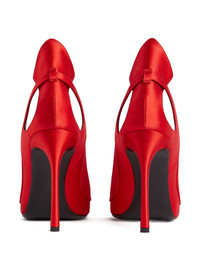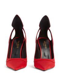 105mm satin cut-out pumps Highlights - Red - Satin material - Cut-out detail - Pointed toe - Stiletto heel Made in Italy Composition Lining: Calf Leather 100% Outer: Viscose 72%, Silk 28% Sole: Calf Leather 100% SIZE & FIT Measurement HEEL 4.13 in(10.5 cm) Washing instructions Specialist Cleaning