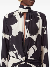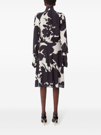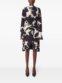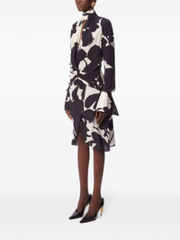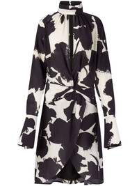 abstract-print high-neck dress Highlights - Black/white - Silk - Crepe texture - Abstract pattern print - Wrap design - Pleat detailing - Dropped waist - High neck - Keyhole neck - Rear button and zip fastening - Long sleeves - Flared cuffs - Knee-length - Asymmetric hem Imported Composition Lining: Viscose 100% Outer: Silk 100% Washing instructions Read Manufacturer Guidelines