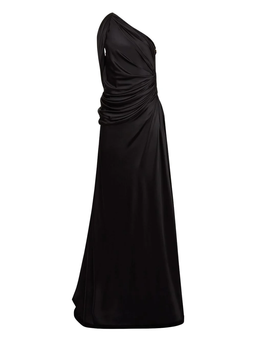 asymmetric maxi dress Highlights - Black - One-shoulder - Draped detailing - Side split Imported Composition Viscose 52%, Silk 37%, Elastane 11% SIZE & FIT FittingInformation This piece fits large – take one size down Washing instructions Read Manufacturer Guidelines