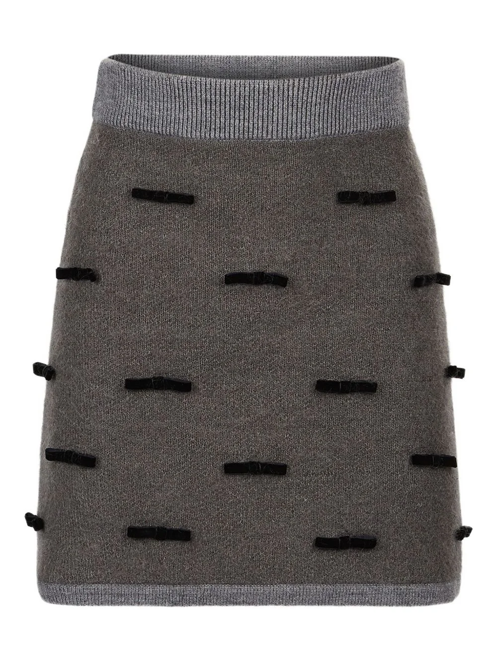 bow-embellished knitted mini skirt Highlights - Grey - Mohair-wool blend - Black velvet bows - Knit texture Imported Composition Mohair 50%, Fabric 30%, Wool 20% Washing instructions Read Manufacturer Guidelines