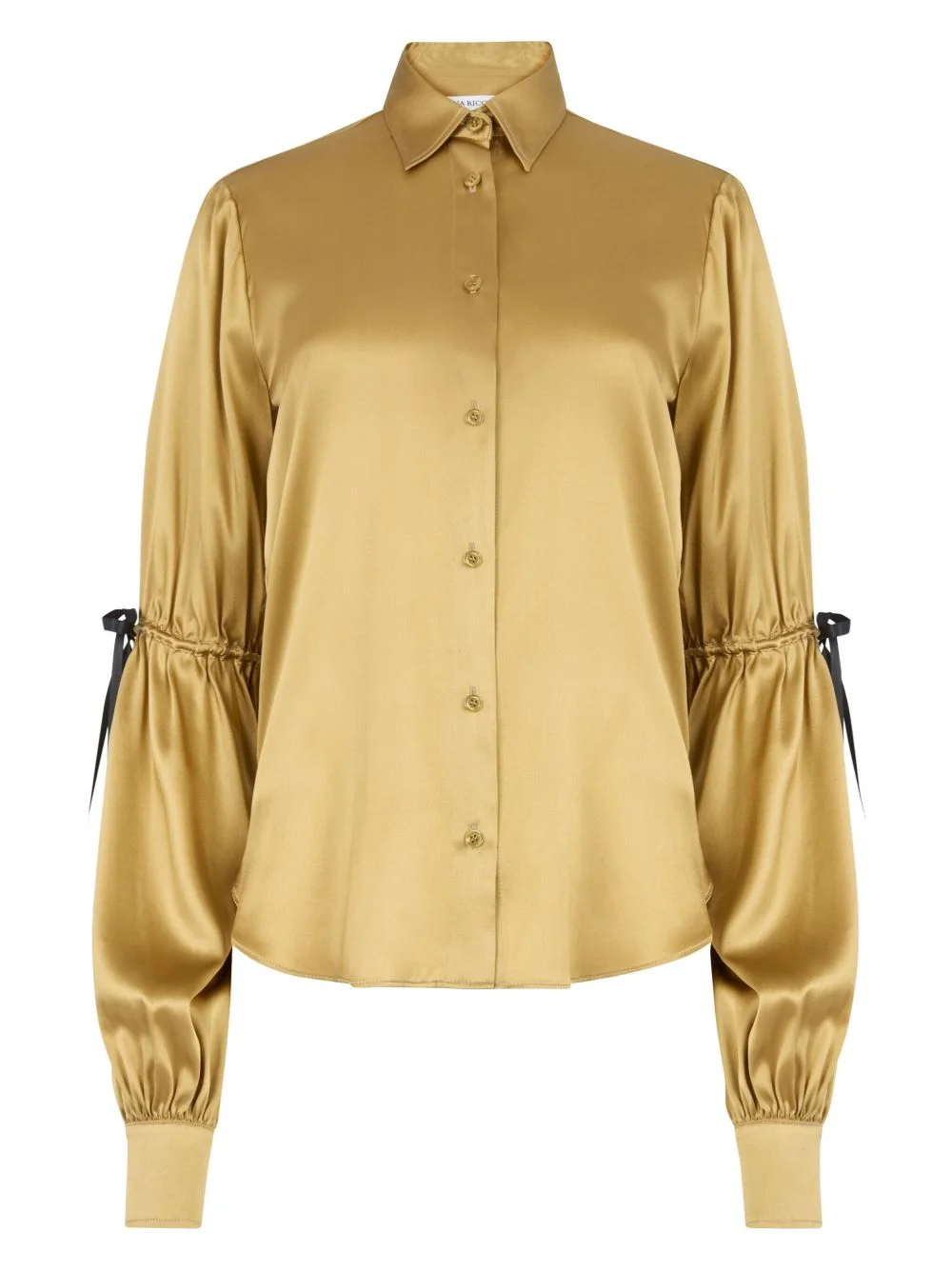 Gold Silk Satin Shirt With Bow Details