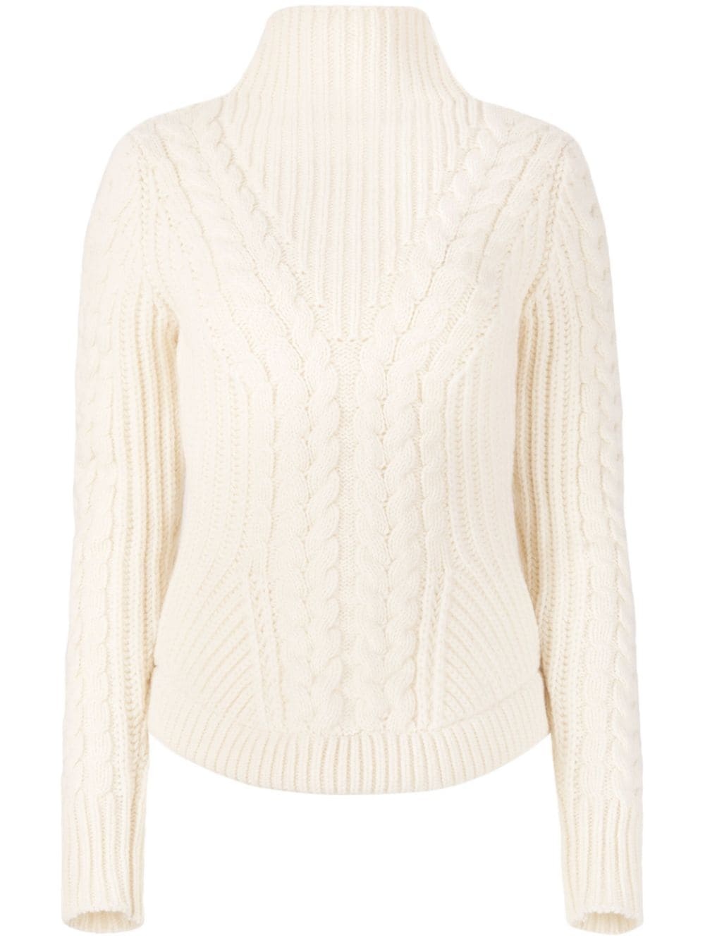 cable-knit wool-blend jumper Highlights - Cream white - Wool-cashmere blend - Chunky cable knit - High neck - Long sleeves - Straight hem Imported Composition Base: Wool 90%, Cashmere 10% Washing instructions Read Manufacturer Guidelines