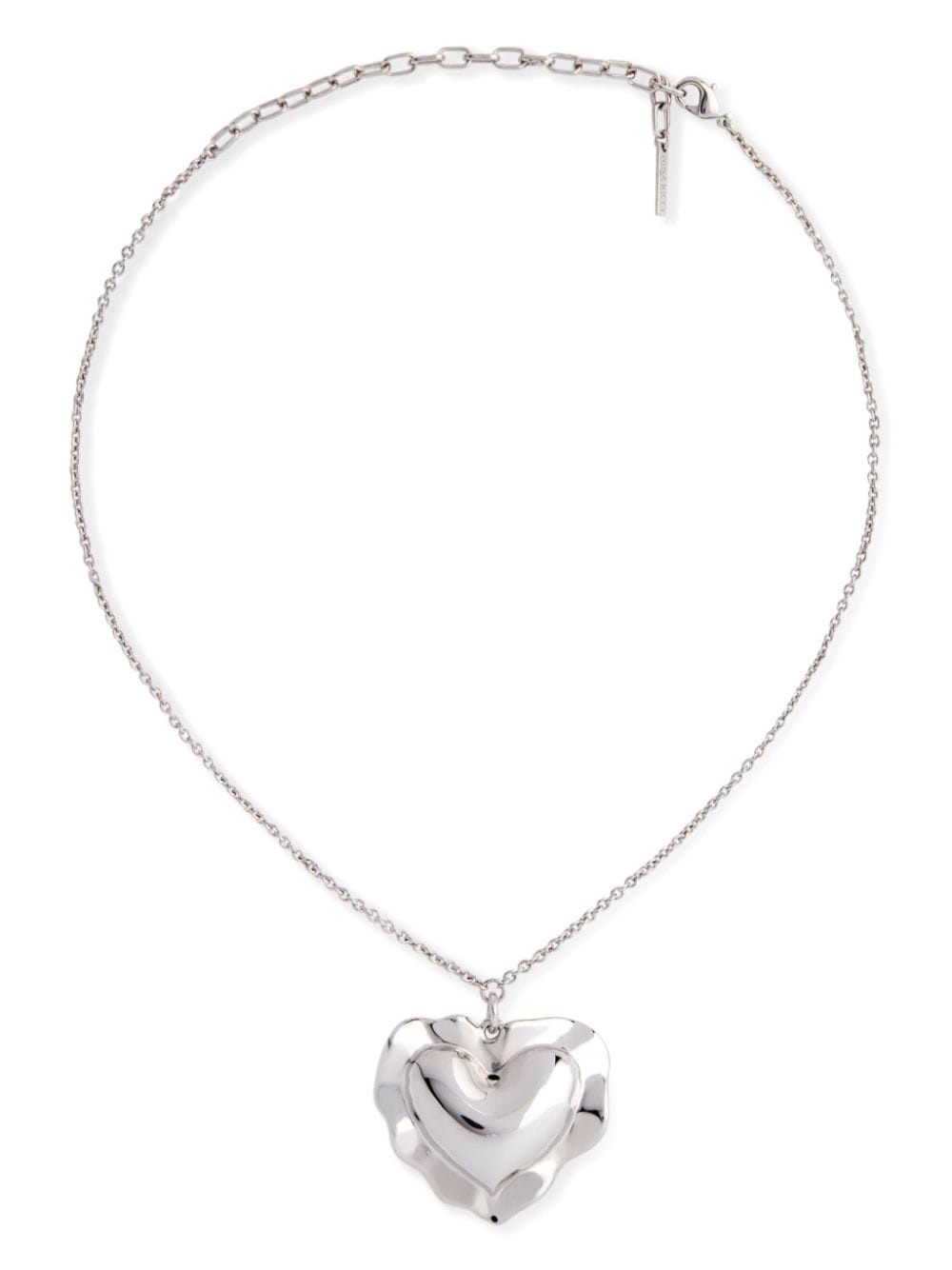 Cushion Heart necklace Highlights - Silver-tone - Brass - Cable-link chain - Variegated-size chain - Heart pendant - Logo charm - Lobster claw fastening - Hammered-effect finish Made in Italy