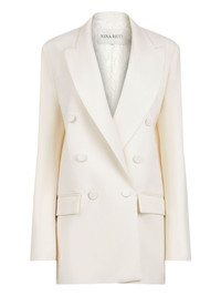 double-breasted blazer Highlights - White - Double-breasted button closure - Peak lapels - Long sleeves - Padded shoulders - Straight hem Imported Composition Lining: Viscose 100% Outer: Virgin Wool 100% SIZE & FIT FittingInformation This piece fits large – take one size down Washing instructions Dry Clean Only
