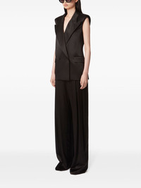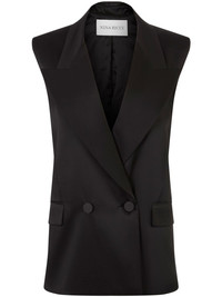 double-breasted satin blazer Highlights - Black - Satin finish - Double-breasted button fastening - Fabric-covered buttons - Peak lapels - Sleeveless - Two side flap pockets - Straight hem Imported Composition Viscose 52%, Silk 37%, Fabric 11%