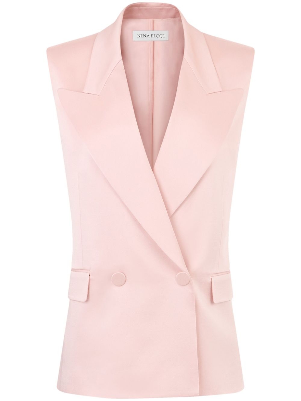 double-breasted vest Highlights - Blush pink - Crepe texture - Double-breasted button fastening - Wide peak lapels - Sleeveless - Two side flap pockets - Central rear vent Imported Composition Acetate 74%, Viscose 26%