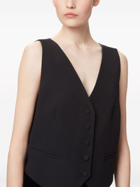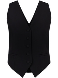 draped open-back vest Highlights - Black - V-neck - Sleeveless - Front button fastening - Square open back - Asymmetric hem Imported Composition Lining: Viscose 100% Outer: Acetate 74%, Viscose 26% SIZE & FIT Measurement LENGTH 21.25 in(54 cm) BUST 37.79 in(96 cm) Washing instructions Read Manufacturer Guidelines