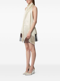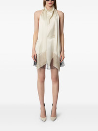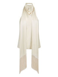 halterneck fringe-detail top Highlights - Light beige - Rear button fastening - Sleeveless - Scarf detailing - Fringe detailing Imported Composition Viscose 52%, Silk 37%, Fabric 11% Washing instructions Dry Clean Only