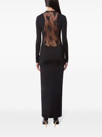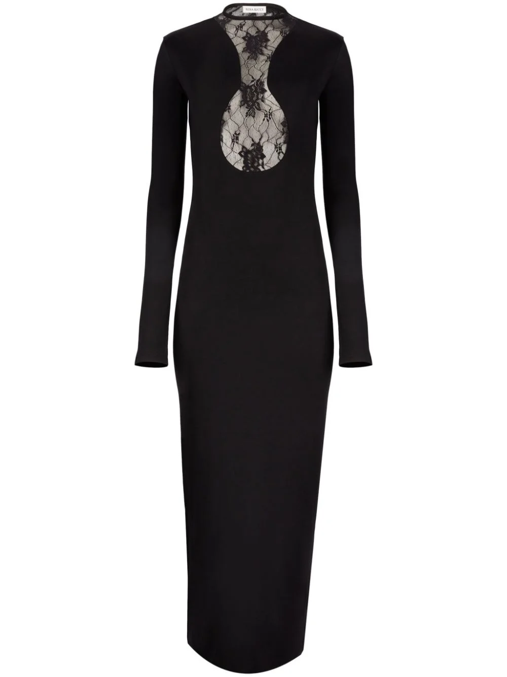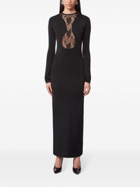 lace-panelling maxi dress Highlights - Black - Sheer lace panelling - Round neck - Long sleeves - Ankle-length - Straight hem Imported Composition Viscose 100%, Polyamide 100% Washing instructions Read Manufacturer Guidelines