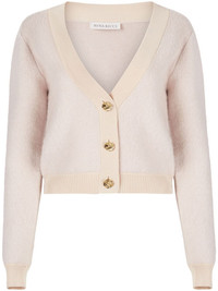 mohair blend V-neck cardigan Highlights - Cream white - Mohair blend - Fine knit - Gold-tone hardware - Front button fastening - V-neck - Ribbed cuffs - Ribbed edge Imported Composition Wool 78%, Viscose 13%, Fabric 9%