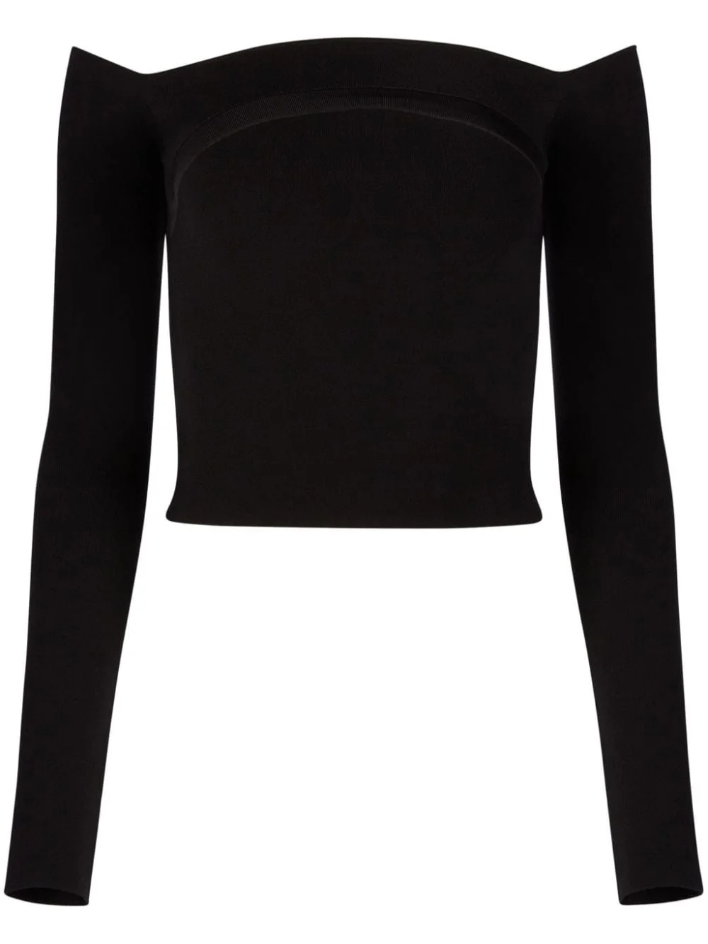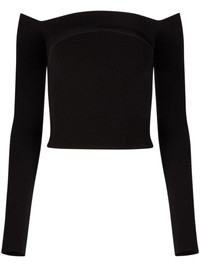 off-shoulder wool-blend top Highlights - Black - Wool blend - Knitted construction - Off-shoulder - Long sleeves - Straight hem Imported Composition Base: Wool 75%, Polyester 15%