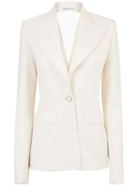 open draped back blazer Highlights - White - Wool - Front button fastening - Peak lapels - Long sleeves - Open back - Draped detailing - Straight hem Imported Composition Wool 100%