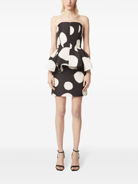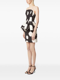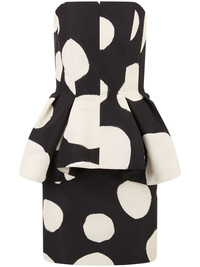 peplum-waist mini dress Highlights - Black/white - Taffeta - Peplum waist - Rear zip fastening - Bustier-style neckline - Strapless - Bold polka dot print - Straight hem - Thigh-length Imported Composition Lining: Viscose 100% Outer: Recycled Polyamide 100%