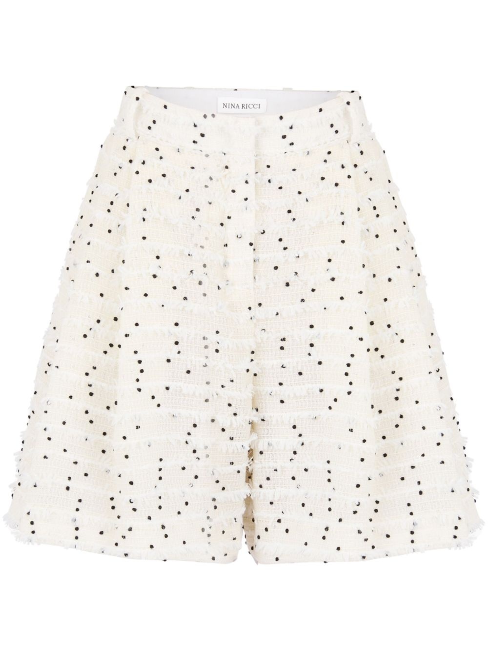 pleated tweed shorts Highlights - White - Wool blend - Tweed - Pleat detailing - Front button fastening - Polka dot embroidery - Slip pockets to the sides - Wide leg Imported Composition Lining: Viscose 100% Outer: Wool 75%, Fabric 25%